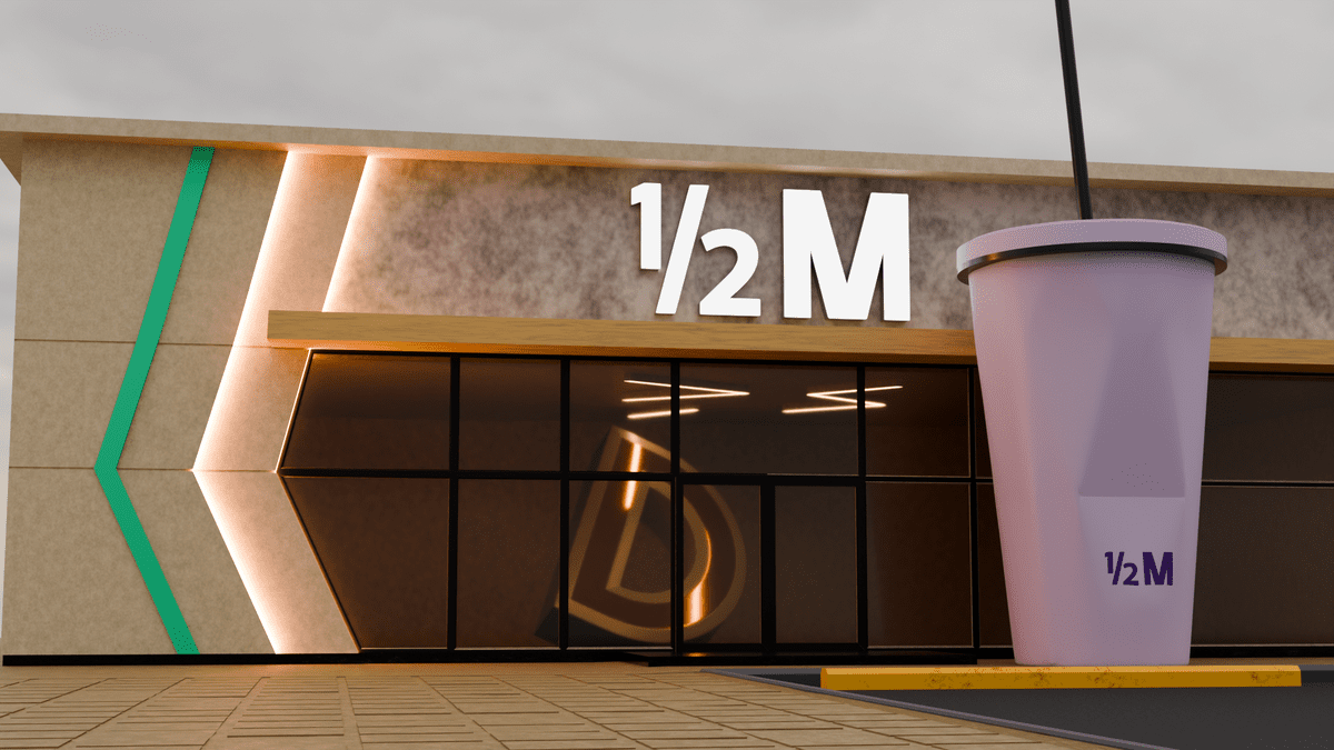 بحيث اميَز اللوجو ليجذب العين و غلفتة بطبقة زجاجية جميله و جعلتة مضيء من الداخل, مع محاكاة الكرتون بشعار و الوان الشركه و بنر قماشي على الارض