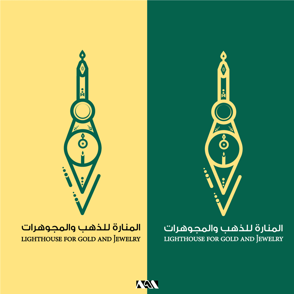 المنارة للدهب و المجوهرات هو شعار عربي مكون من حروف كلمة المنارة بشكل عمودي كما يعطي الشعار شكل القرط وهو رمز من رموز المجوهرات