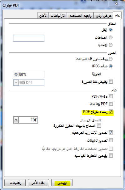 نقوم بإنشاء نموذج PDF ونخرجه في المسار الذي نرغب ... عبر الضغط على "تصدير" ... ونفتح الملف للإطلاع عليه وبذلك نكون أنهينا إضافة الملف .... نكرر الخطوات على الصور الموجودة عننا ... ونقوم بدمج الملفات الناتجة ليكونوا ملف كامل متكامل