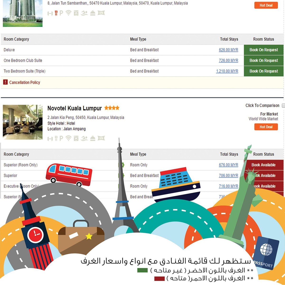 هنا اختيار الدولة والجنسية والمنطقة التي ستبحث داخلها عن فنادق والفترة المطلوبة تحميل الصورة رابط الصورة بعد البحث سيظهر لك الفنادق المتاحه والغير متاحه فالمتاح باللون الاحمر تحميل الصورة رابط الصورة travel-fc7b80f30f تحميل الصورة رابط الصورة travel-43749666c7 تحميل الصورة رابط الصورة travel-c1fc4f3485 تحميل الصورة رابط الصورة منذ 9 سنوات 47 مشاهدة