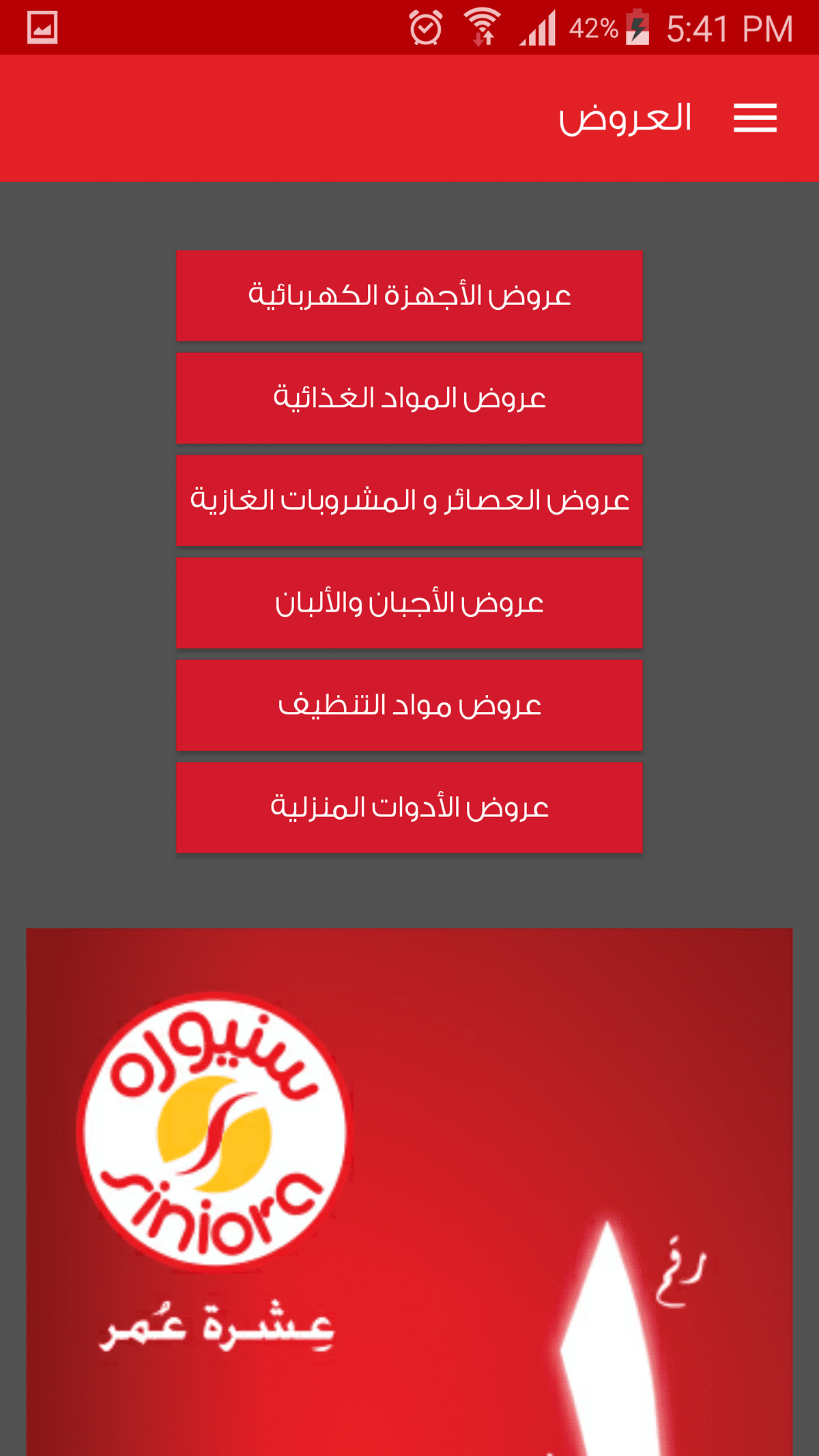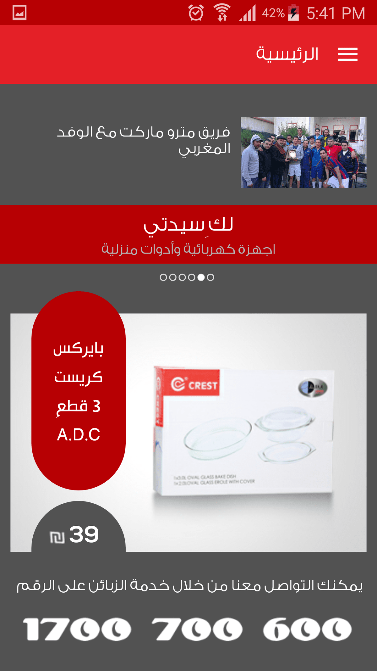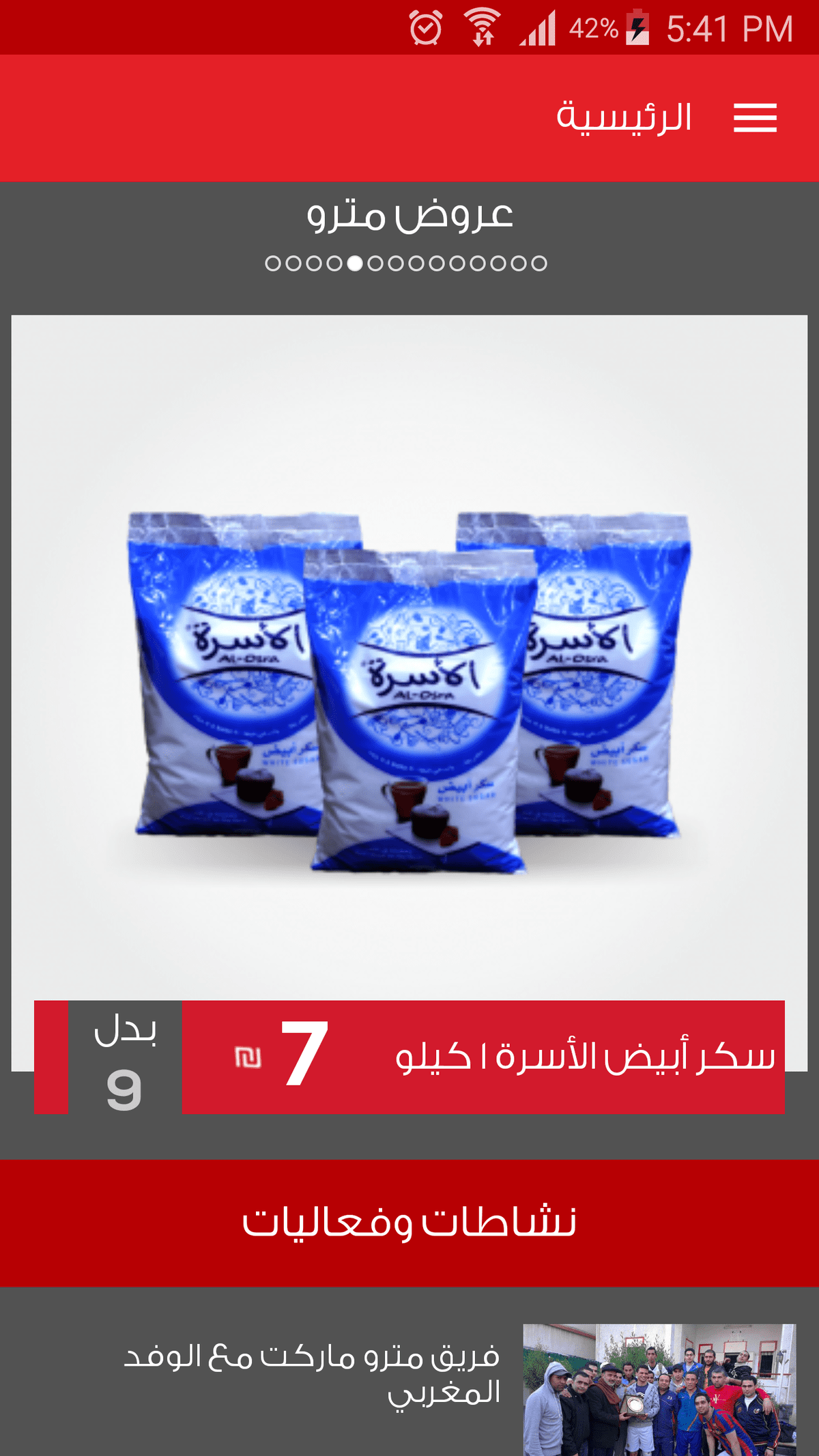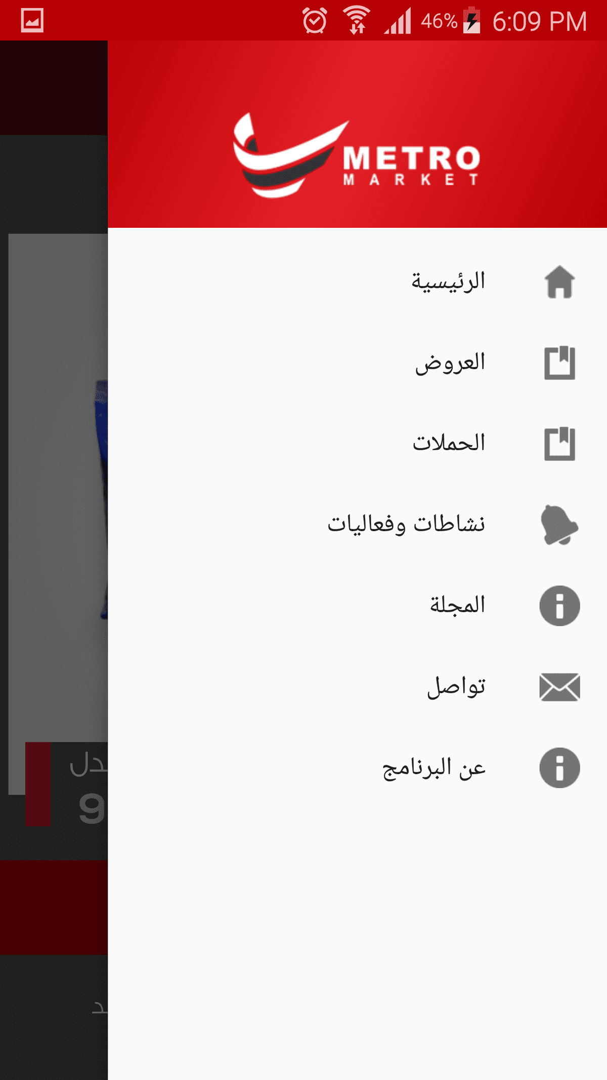 تظهر هذه الشاشة اقسام العروض التي يوفرها مترو ماركت عند الضغط على احد الاقسام يتم الانتقال الى شاشة العروض