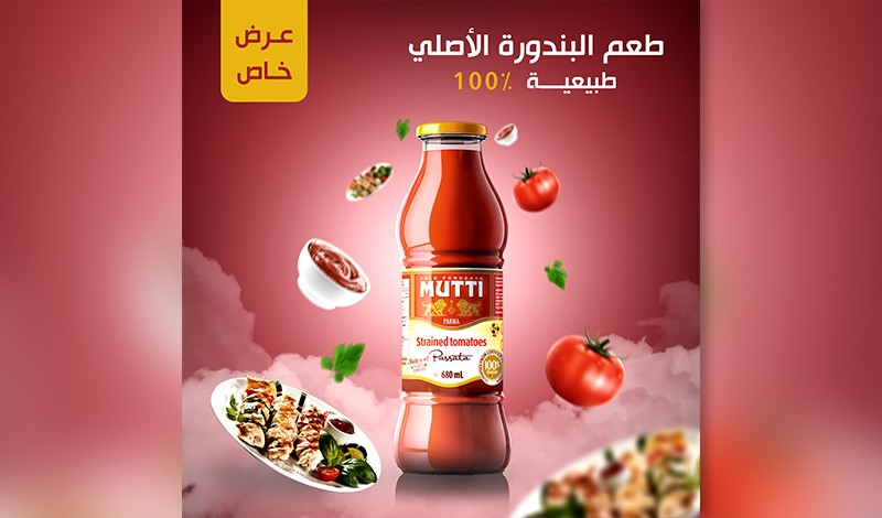 قمت بتصميم إعلان مخصص لحملة تسويقية على وسائل التواصل الاجتماعي لمنتج شراب طماطم