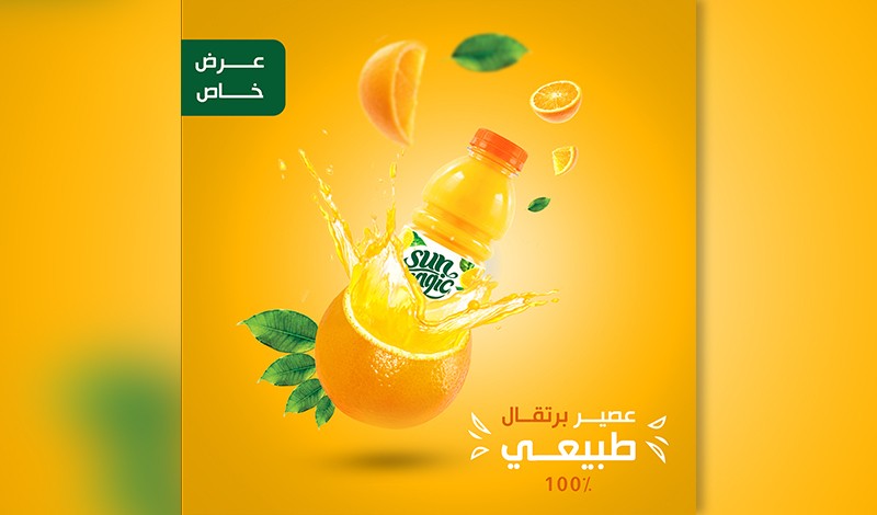 قمت بتصميم إعلان مخصص لحملة تسويقية على وسائل التواصل الاجتماعي لمنتج شراب برتقال