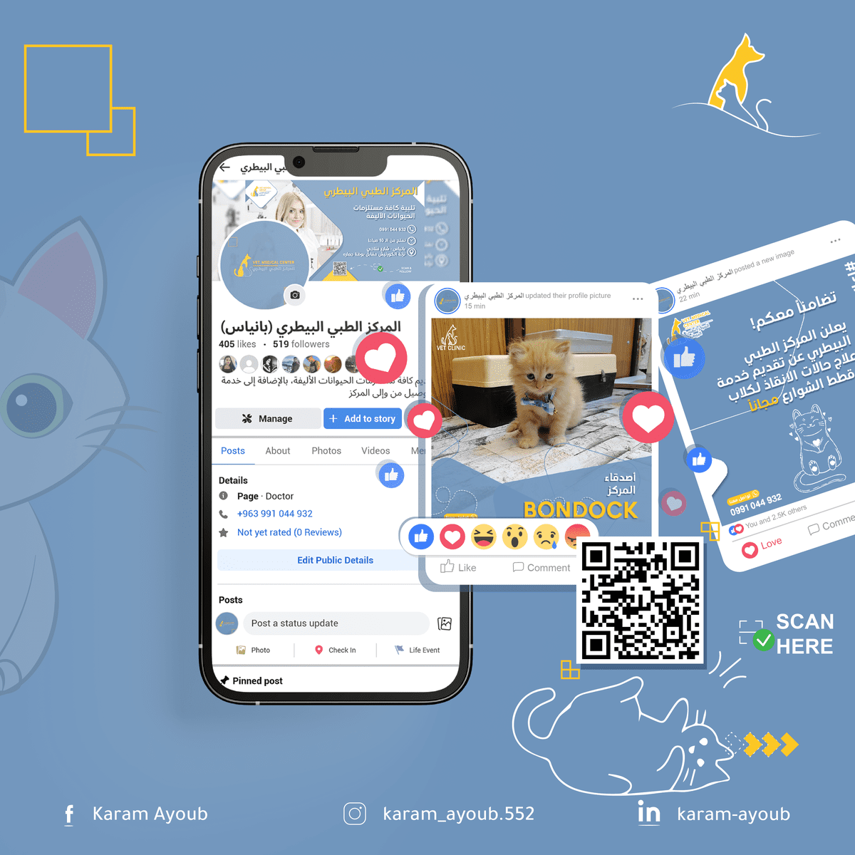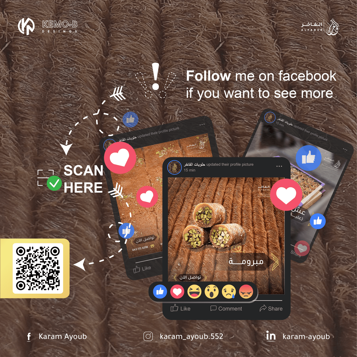 مضاف إليها الـ QR Code الخاص بصفحة الفيسبوك التابعة لي كمصمم