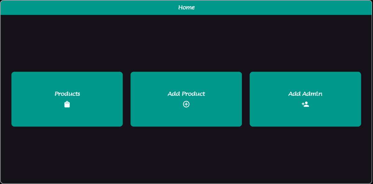 This View Will Appear To The Admin When He Logs In, Where He Can Add New Admin, Add New Product, Or View The Products To ControL Them