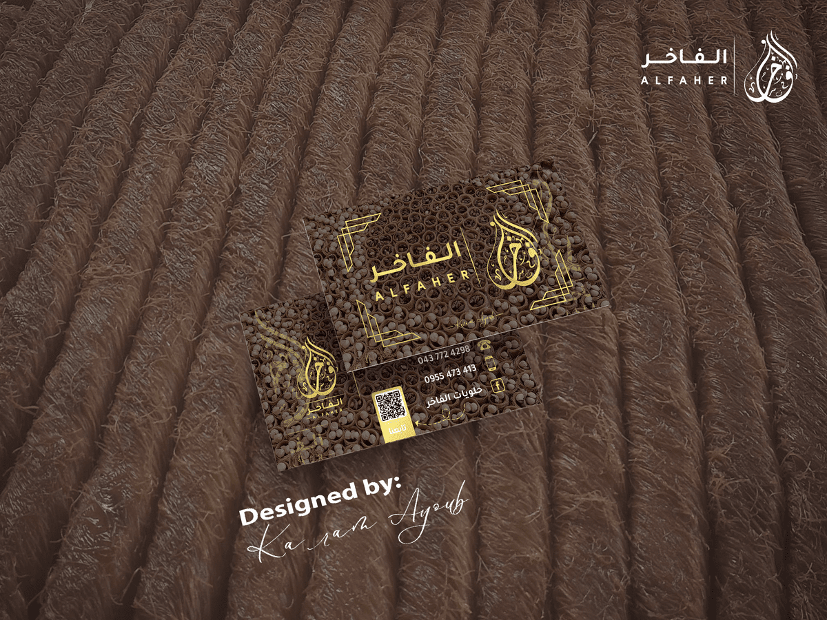 بطاقة أعمال لمحل حلويات الفاخر، تتضمن QR Code لسهولة الوصول إلى صفحة الفيسبوك