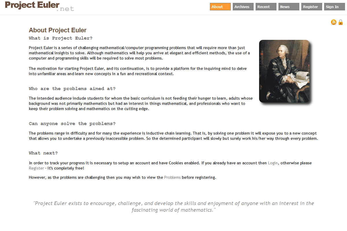 مشروع Euler هو عبارة عن سلسلة من المسائل والتحديات في البرمجة والحوسبة، الصعبة التي تتطلب المزيد من مجرد أفكار رياضية لحلها.