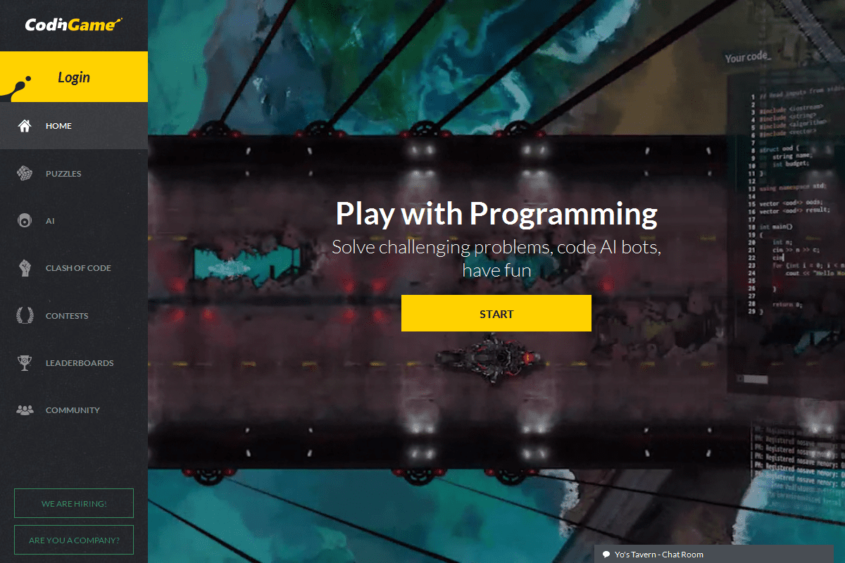 CodinGame هي عبارة عن منصة التدريب القائم على التحدي للمبرمجين حيث يمكنك أن تساهم في أهم المواضيع البرمجية. حل الألعاب، والتعلم من الزملاء، و كثير من المتعة.