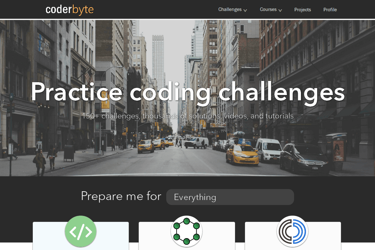 Coderbyte هو تطبيق ويب يساعدك على ممارسة مهارات البرمجة الخاصة بك، وإعداد معسكرات للمبرمجين، ويساعدك في الاستعداد لمقابلات العمل مع مجموعة من أسئلة المقابلات، وأشرطة الفيديو، والحلول والأدوات.