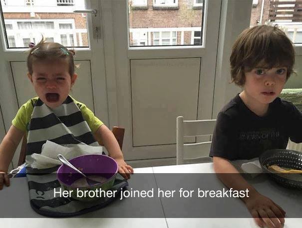 تبكى لأن أخوها قام بمشاركتها على الطاولة لتناول الفطور :D