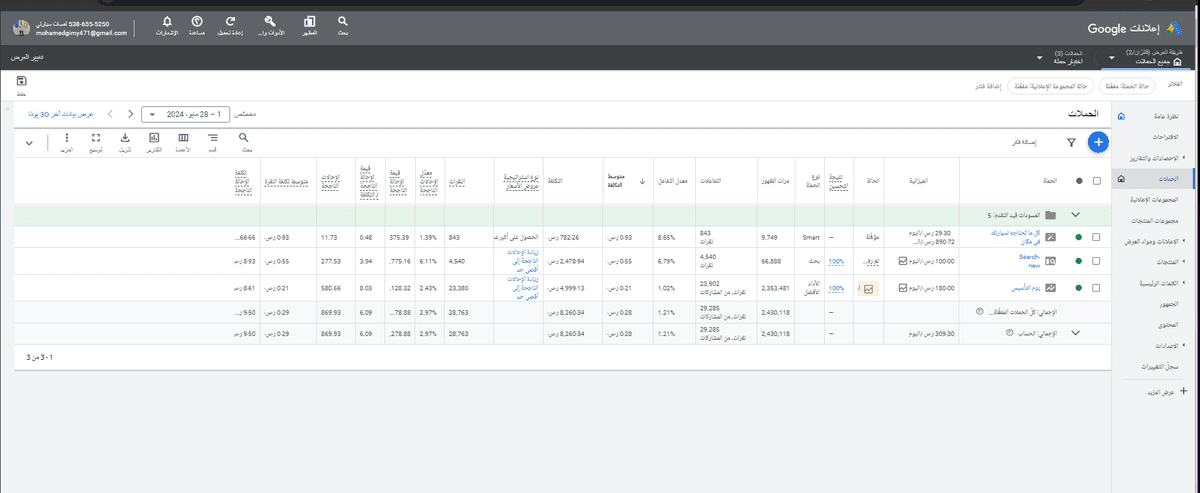 نتائج الحملات الاعلانية من خلال جوجل asd