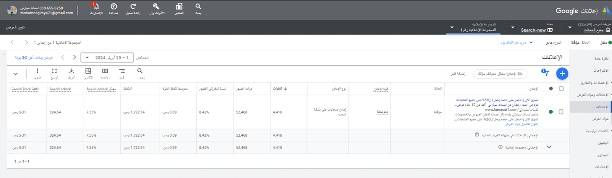 حملة مخصصة على شبكة بحث جوجل + النتائج الى الان