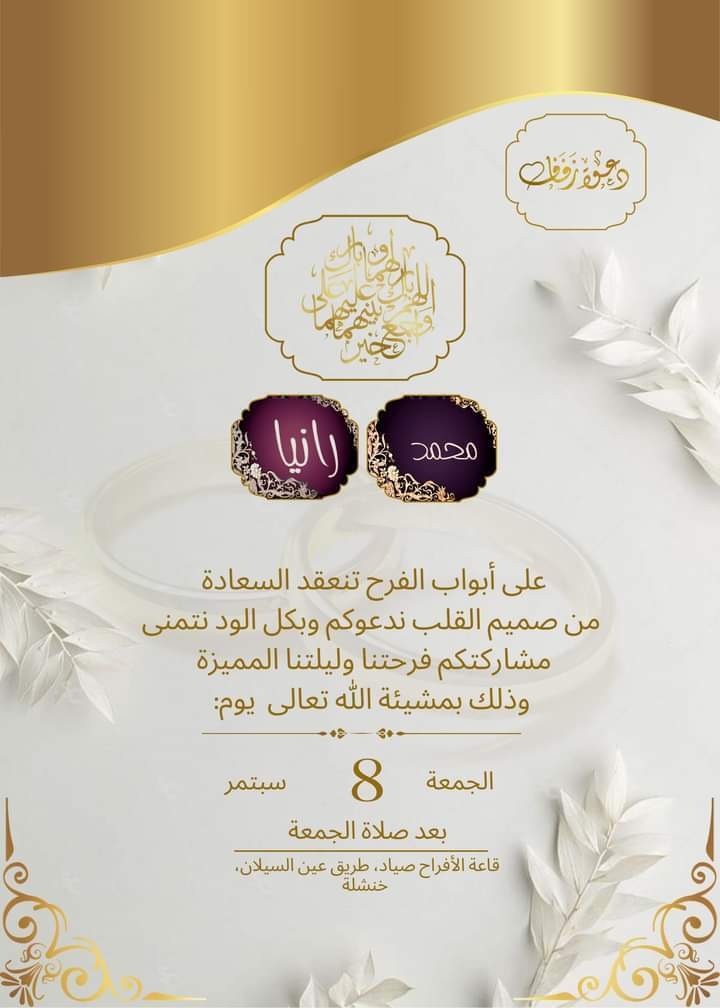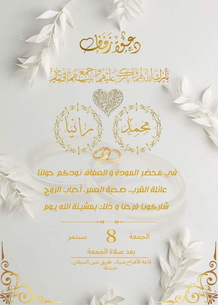 تصميم بطاقة دعوة زفاف باللغة العربية