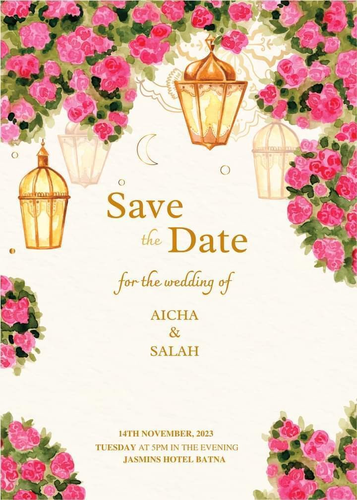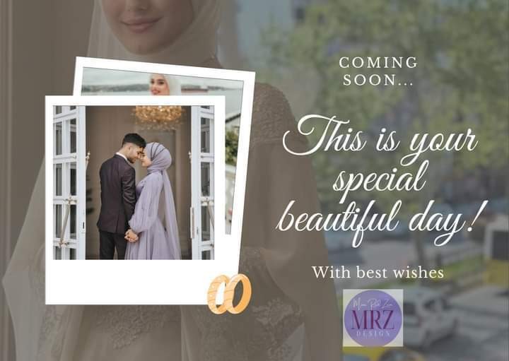 - تصميم بطاقة دعوة زفاف مميزة عدد 1 بصيغة صورة PNG او JPG عالية الدقة، بألوان بهيّة