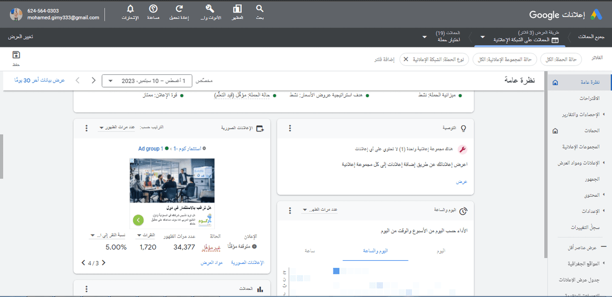 حملة على الشبكة الاعلانية Google ads تحميل الصورة رابط الصورة نتائج الحملة مع الايقاف فى الموعد المحدد تحميل الصورة رابط الصورة منذ أكثر من سنتين 10 مشاهدة