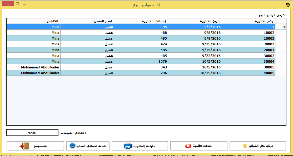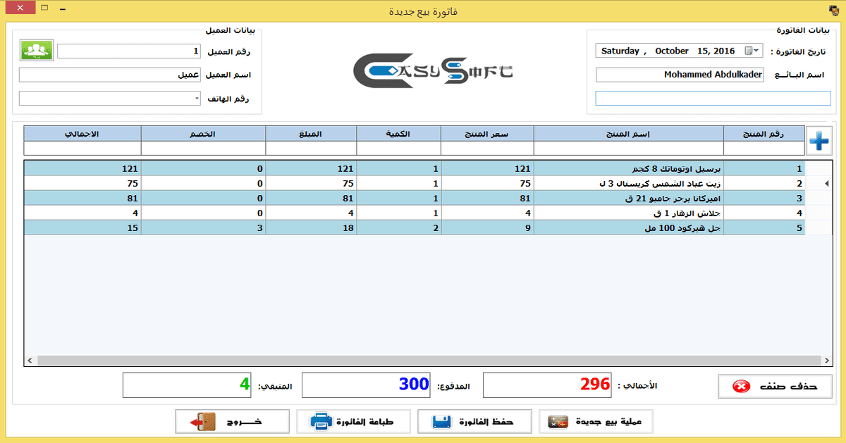 فاتورة مبيعات ادخال الاصناف عن طريق اسم الصنف او الباركود