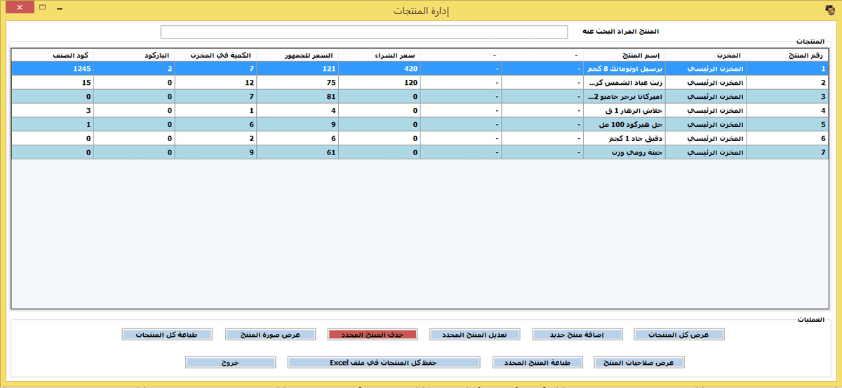 يمكن اضافة المنتج بالفاتورة عن طريق اختيار الصنف من شاشة الاصناف او عن طريق الباركود او الكود المختصر للصنف