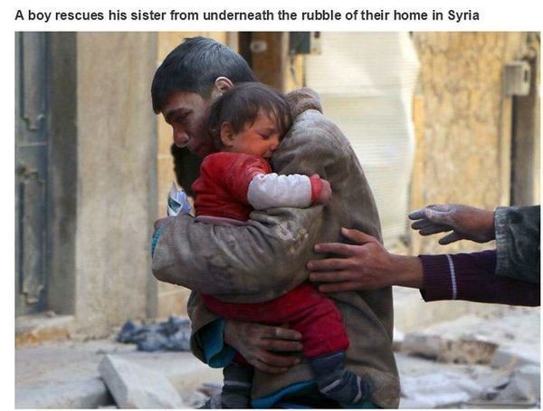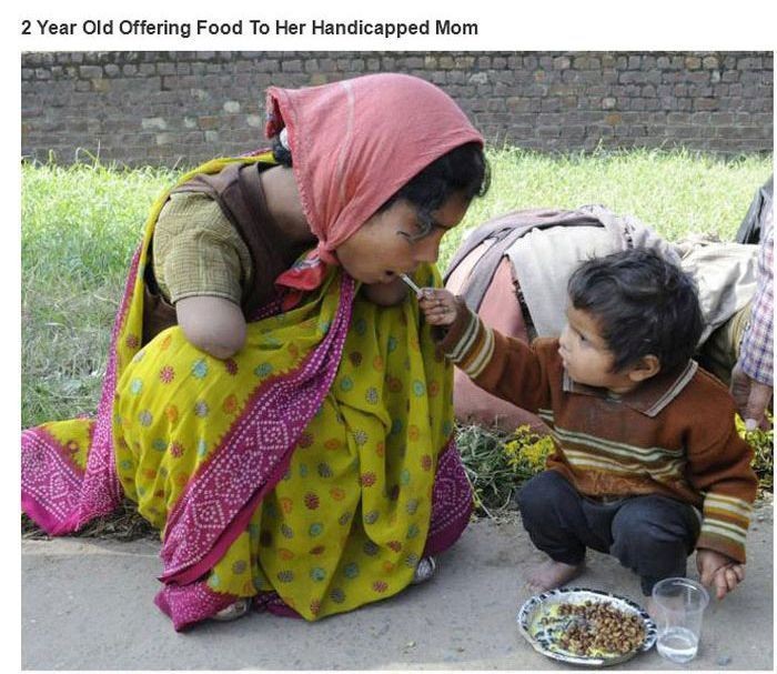 طفل فى الثانية من عمره يطعم أمه التى فقدت كلتا يديها