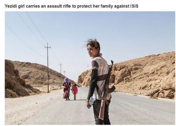 فتاة يزيدية تحمل بندقية للدفاع عن عائلتها ضد الجماعة الارهابية داعش