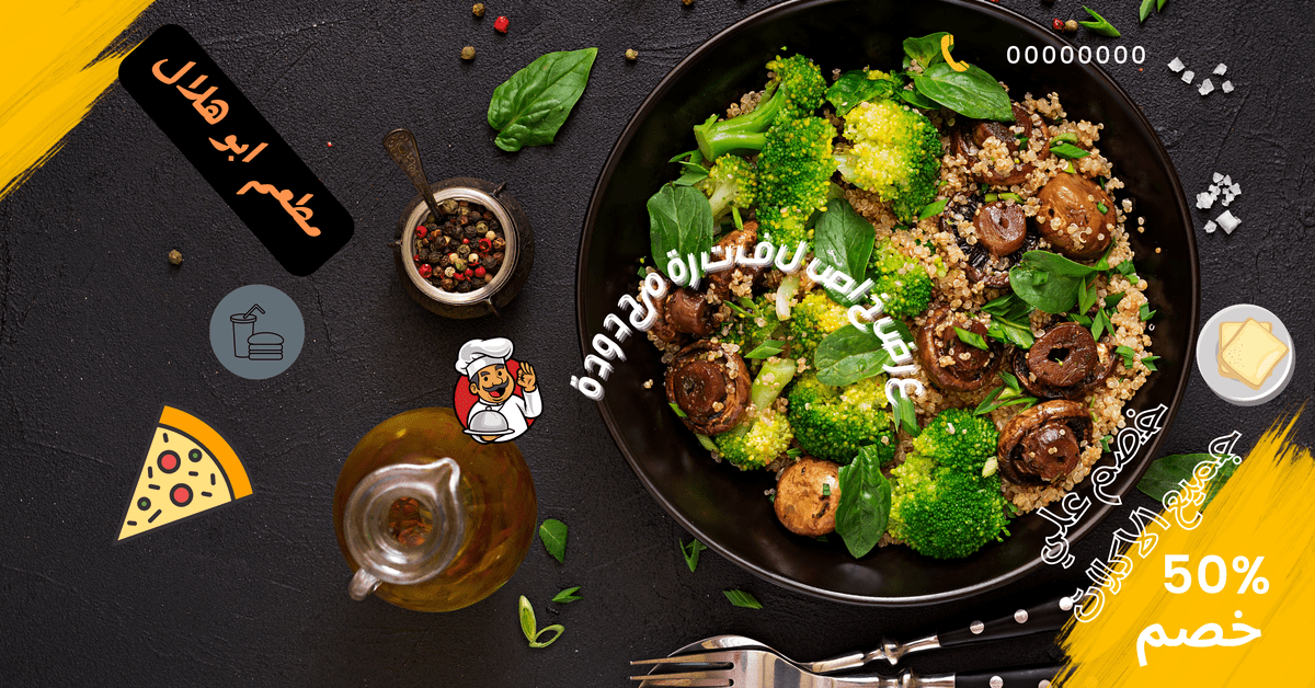 هذا تصميم Facebook_Ads عن خصومات في مطعم اكل