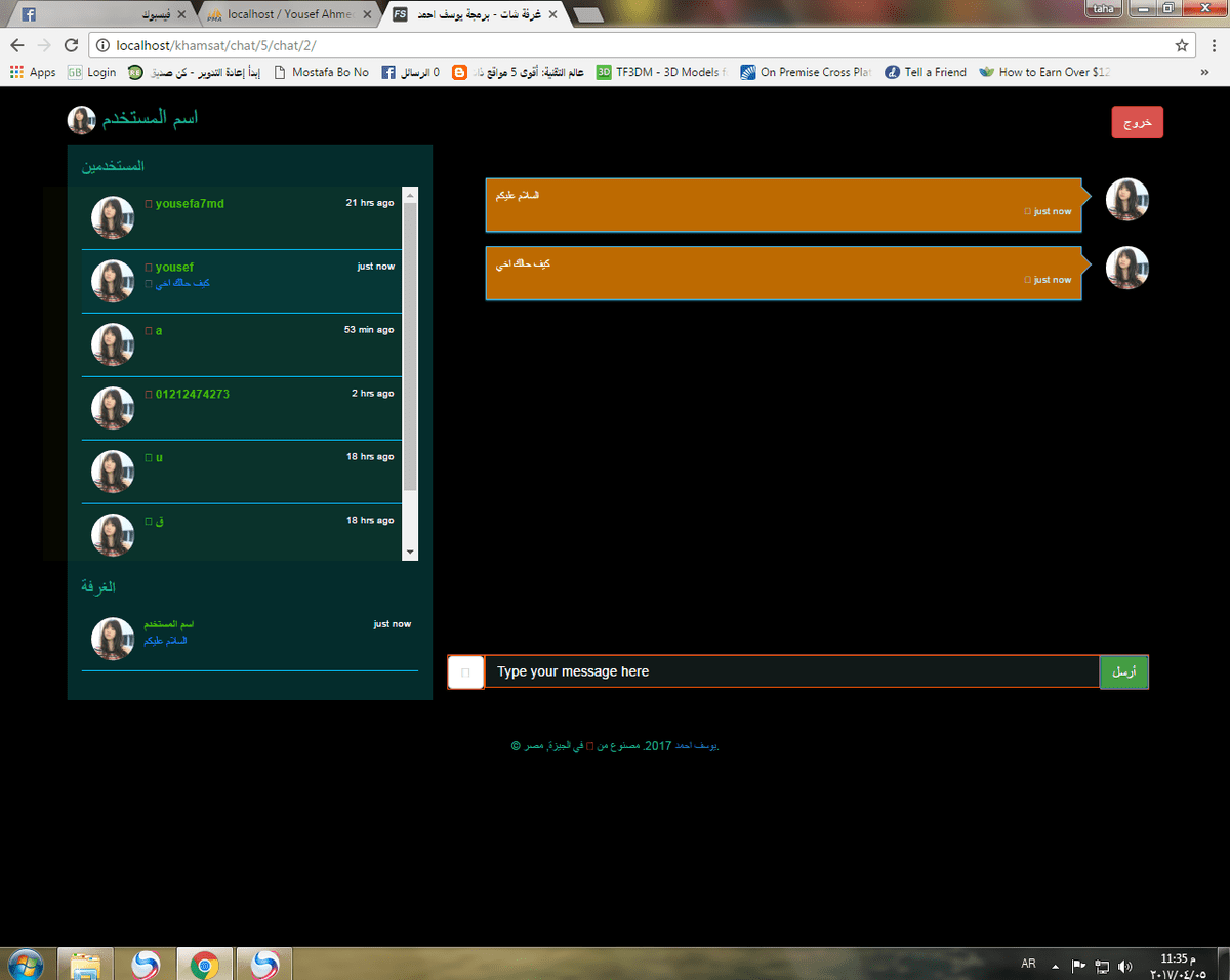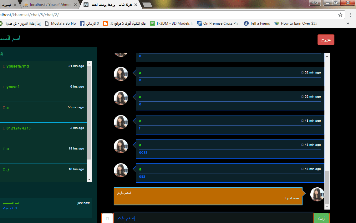 الشات الجماعي | المستخدم المحدد بلون مختلف لسهوله معرفة الرسائل المرسله بدون وجع العين او بدون تشتيت بمعنا اصح :)