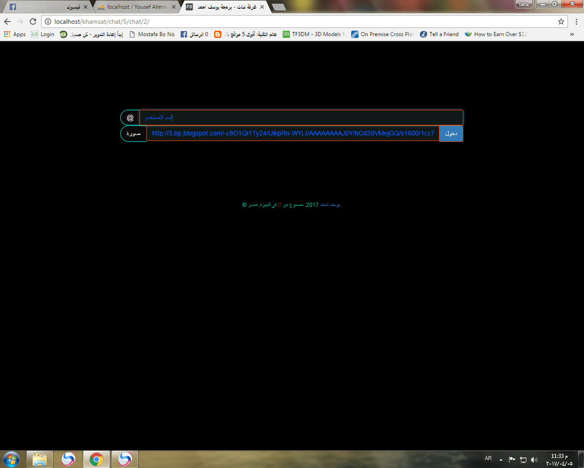 يقوم المستخدم بادخال اسمه وصورة رمزية لاستخدامها داخل الشات