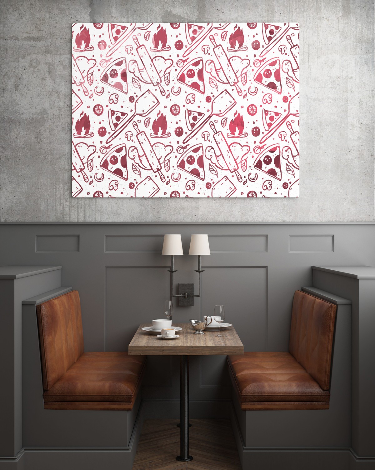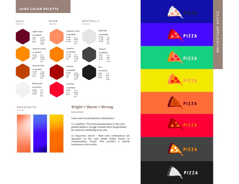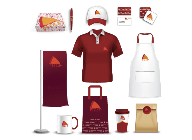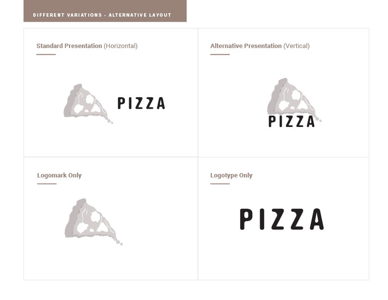 إظهار الشعار على الهوية المُعبٌرة عن المطعم، الهوية البصرية مهمة لتخيل الشكل النهائي للتصميم بخلفيات مختلفة، وعلى أشكال أخرى.