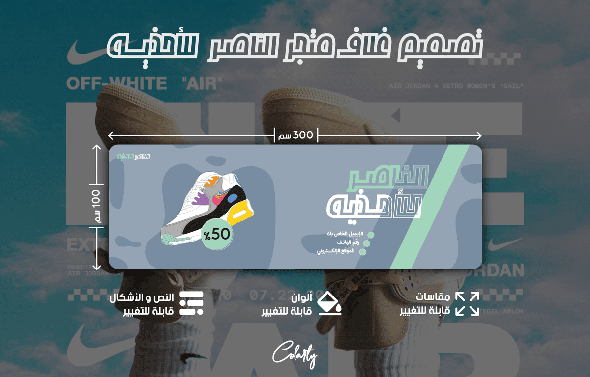 أحد التصاميم اللتي قمت بها لعميل مرتقب. الإسم "الناصر للأحذية" تم إختياره كنموذج قبلي للتصميم. المتجر خاص ببيع الأحذية.