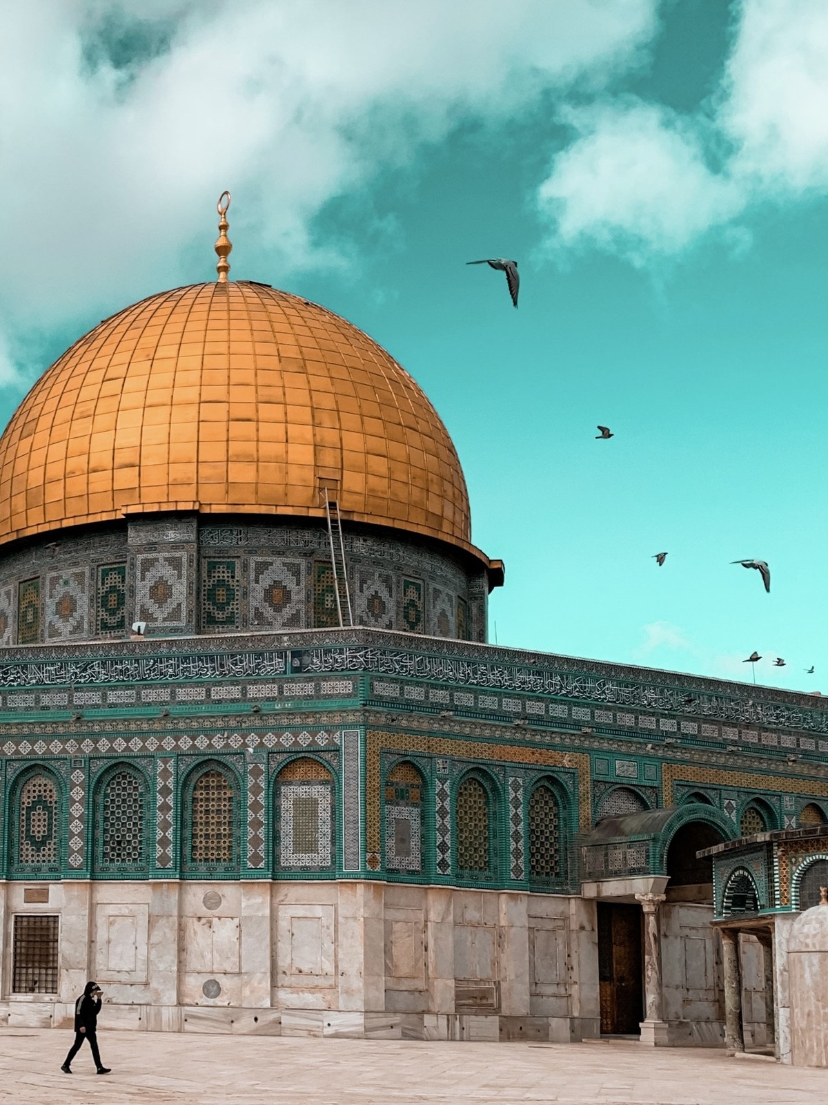 تحميل الصورة رابط الصورة هذه صورة لقبة الصخرة في المسجد الأقصى، كما يوجد طيور تحلّق في سماء القدس. منذ 4 سنوات 1 مشاهدة