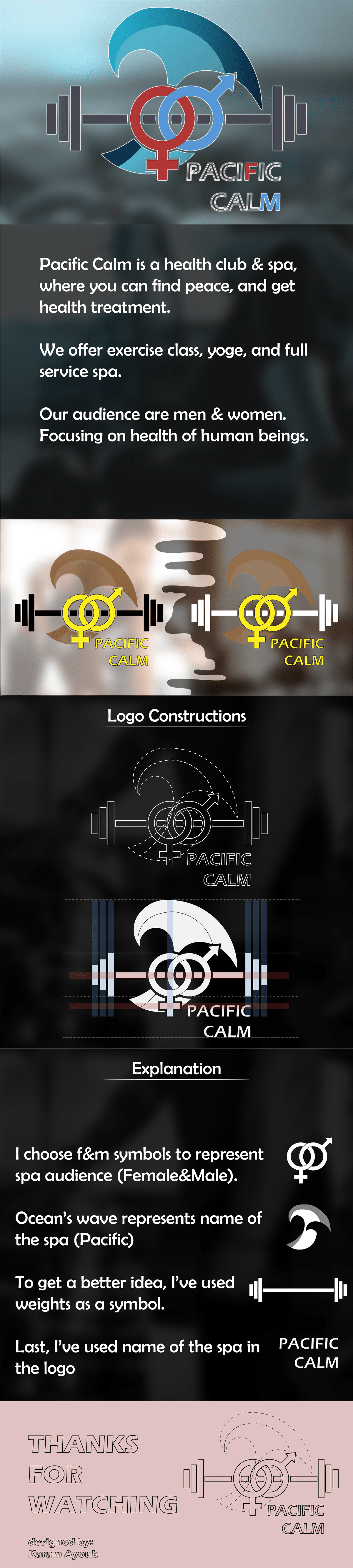 شعار خاص لنادي ومنتجع لليوغا وكمال الأجسام، مع تفاصيل واستخدامات الشعار